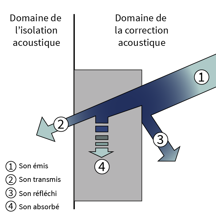 – l’isolation acoustique : réduire la transmission du son au travers d’une cloison ou d’un plancher.